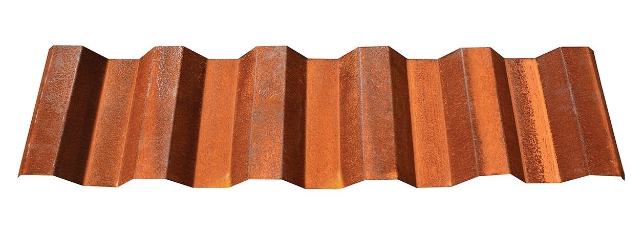 Pre-painted metal that looks like old rusted tin roofing. 12 colors to choose from and available in roofing, siding, flat sheets, and coil. The look of an authentic rusted metal roof, but without all of the problems.